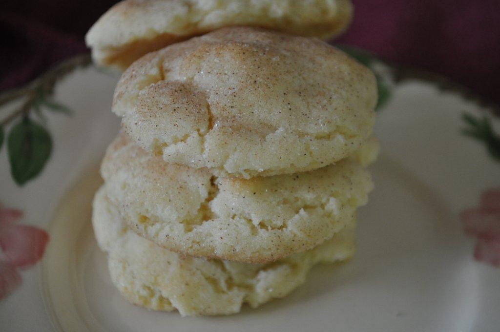 Last month, I was asked by a good friend to make some for her daughter's bridal shower, so I whipped out the old Betty Crocker cookbook---the one I got for my high school graduation, oh so many years ago (back when teenage girls had 'hope chests' and collected homemaking stuff )--and made the traditional, nothing fancy, old-fashioned Snicker doodle. And man was it good! All sugary and cinnamony. Mmmm. It was just like my mom used to make, because--it was the one my mom used to make! (not flat, but a bit puffy)